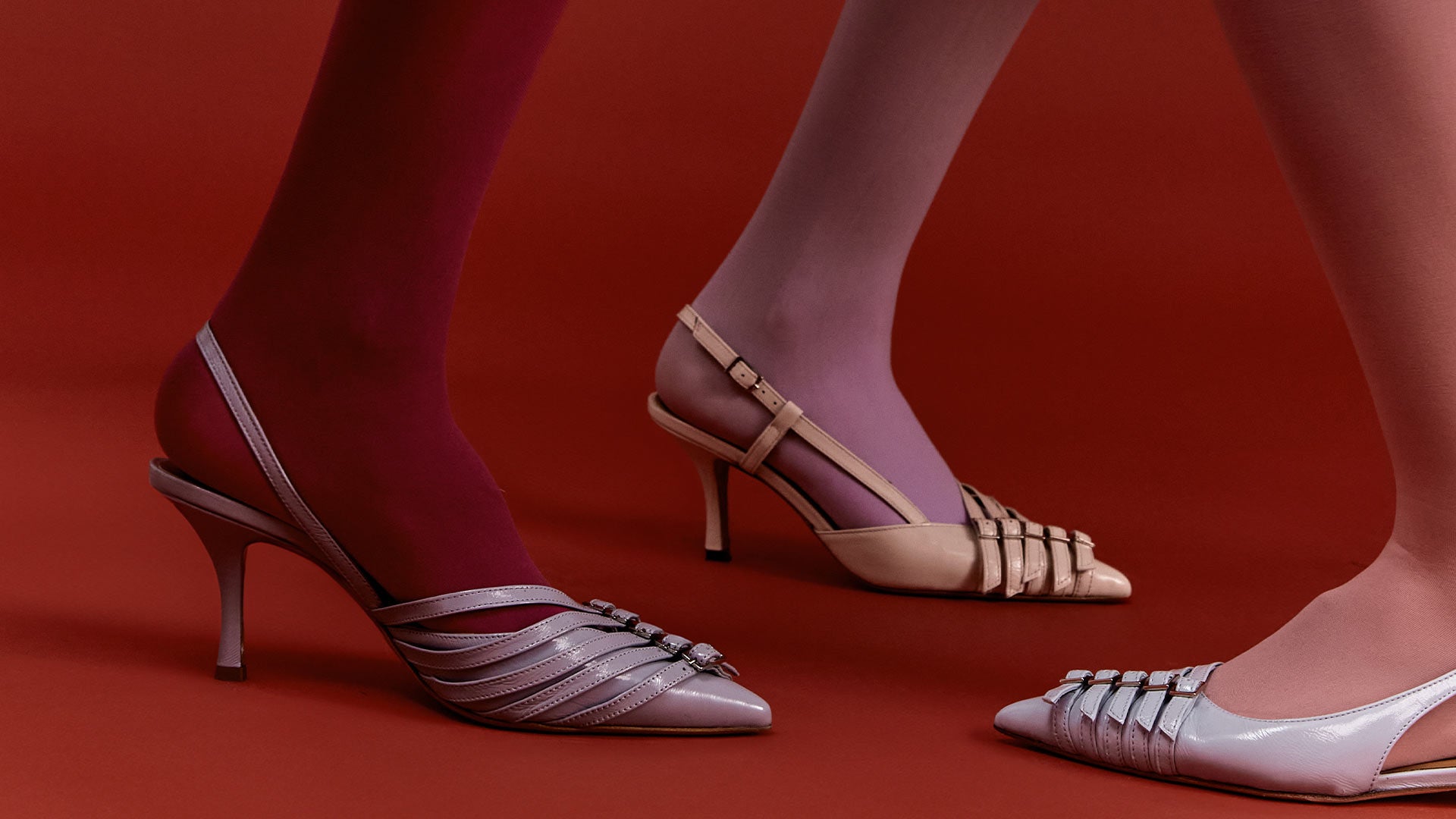 Décolleté in naplak nero e nude con cinturini e tacco incavato