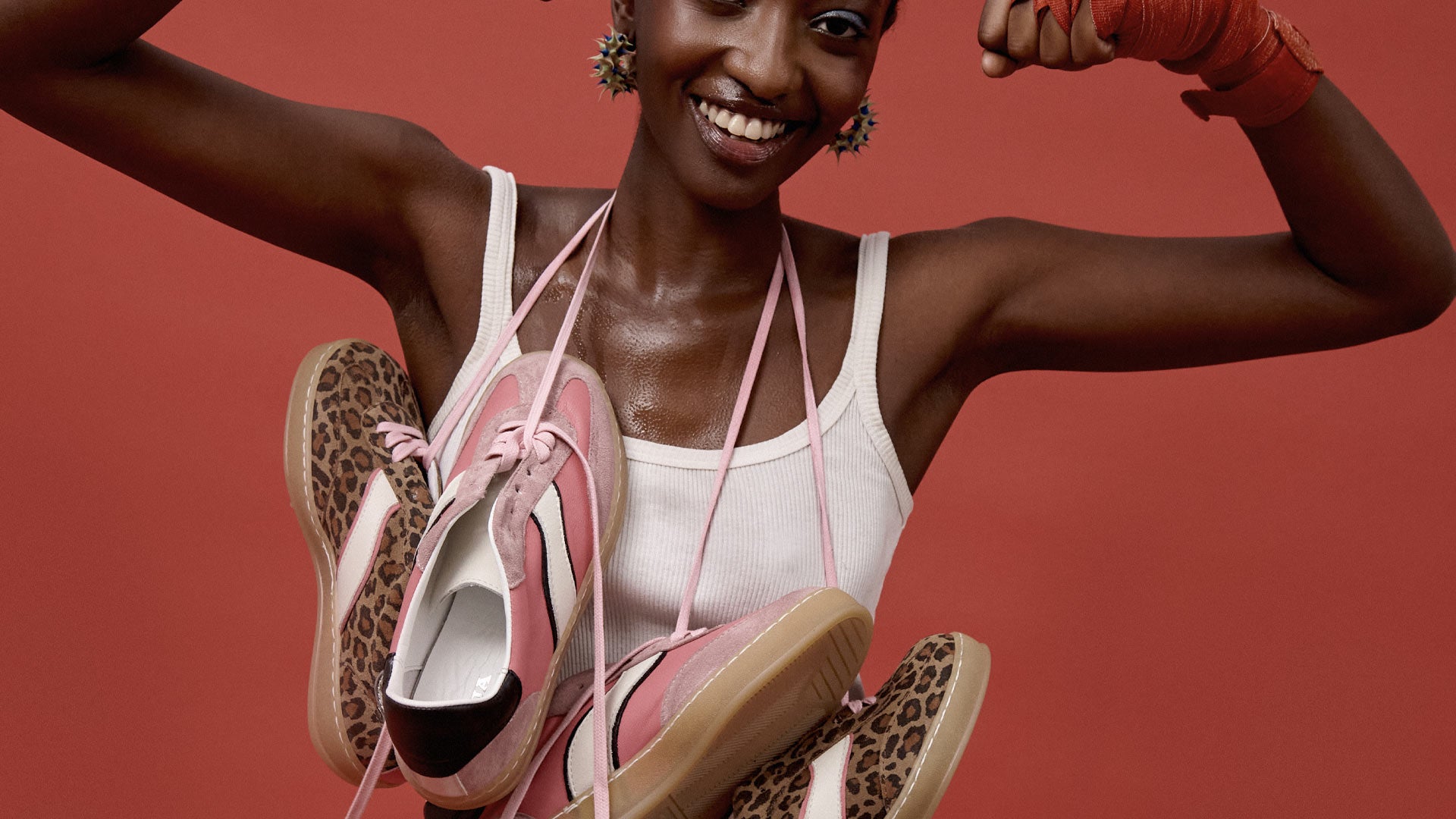 Décolleté in camoscio zebrato con tre cinturini e tacco a calice