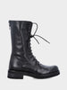 Realizzati in vitello verde, questi anfibi si distinguono per la punta tonda e la linea compatta, resa ancora più moderna dalla cerniera posteriore, che aggiunge un dettaglio funzionale e distintivo. Il tacco monoblocco da 20mm assicura comfort e stabilità, mentre la suola in gomma offre stabilità e leggerezza, ideale per un utilizzo quotidiano. La tomaia liscia e il design essenziale rendono questo modello un perfetto equilibrio tra spirito urbano e raffinatezza artigianale.