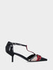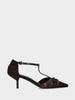 Décolleté T-bar in verlux nero con cinturini e tacco a calice
