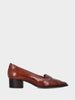 Realizzato in naplak nero, è impreziosito da un puntalino su punta sfilata e da una frangia con mascherina a bocca di leone, elementi che sottolineano la tradizione sartoriale. Il tacco a blocco da 40mm, fasciato in cuoio, dona stabilità e stile, mentre la suola in gomma garantisce comfort e resistenza.
