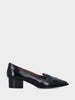 Mocassino in naplak nero con frangia, mascherina e tacco a blocco