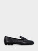 Mocassino in nappa nera con mascherina a bocca di leone e zeppa interna