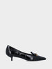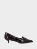 Realizzato in vernice testa di moro stampata coccodrillo, presenta una punta quadratina sfilata che dona modernità e un tacco a calice applicato da 30mm che unisce stabilità e femminilità. La fibbia rettangolare sul cinturino della vaschetta sottolinea l'anima fashion del modello, mentre la suola in cuoio e gomma assicura eleganza e praticità.