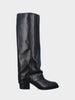 Stivale a tubo in vitello nero con ghetta risvoltata e punta stondata
