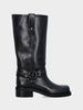 Realizzato in vitello nero, è costruito su monoblocco con tacco da 40mm, con una punta quadrata e una grintosa cavigliera decorativa che ne esalta il carattere. La suola in gomma extra light assicura leggerezza e comodità, perfetta per accompagnare la giornata con passo sicuro.