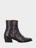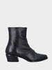 Realizzato in nappa nera, questo stivaletto si distingue per la punta sfilata e la tomaia con mezza punta e goffrature sul collo, che donano movimento e personalità alla silhouette. Il tacco a blocco da 40mm, fasciato in pelle, garantisce stabilità e comfort, mentre la cerniera laterale assicura una calzata pratica e discreta. La suola in gomma completa il modello offrendo flessibilità e comodità, ideale per un'eleganza quotidiana dal gusto raffinato.