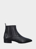 Realizzato in camoscio testa di moro, questo tronchetto si distingue per la tomaia a lembi a V, che incornicia il piede con un taglio pulito e dinamico. Le fascette in pelle a rivestimento degli elastici del gambaletto aggiungono un dettaglio sofisticato, enfatizzando la cura artigianale del design. La punta sfilata allunga visivamente la silhouette, mentre il tacco basso da 20mm garantisce un ottimo comfort. La suola in gomma completa la struttura, assicurando flessibilità e stabilità in ogni passo.